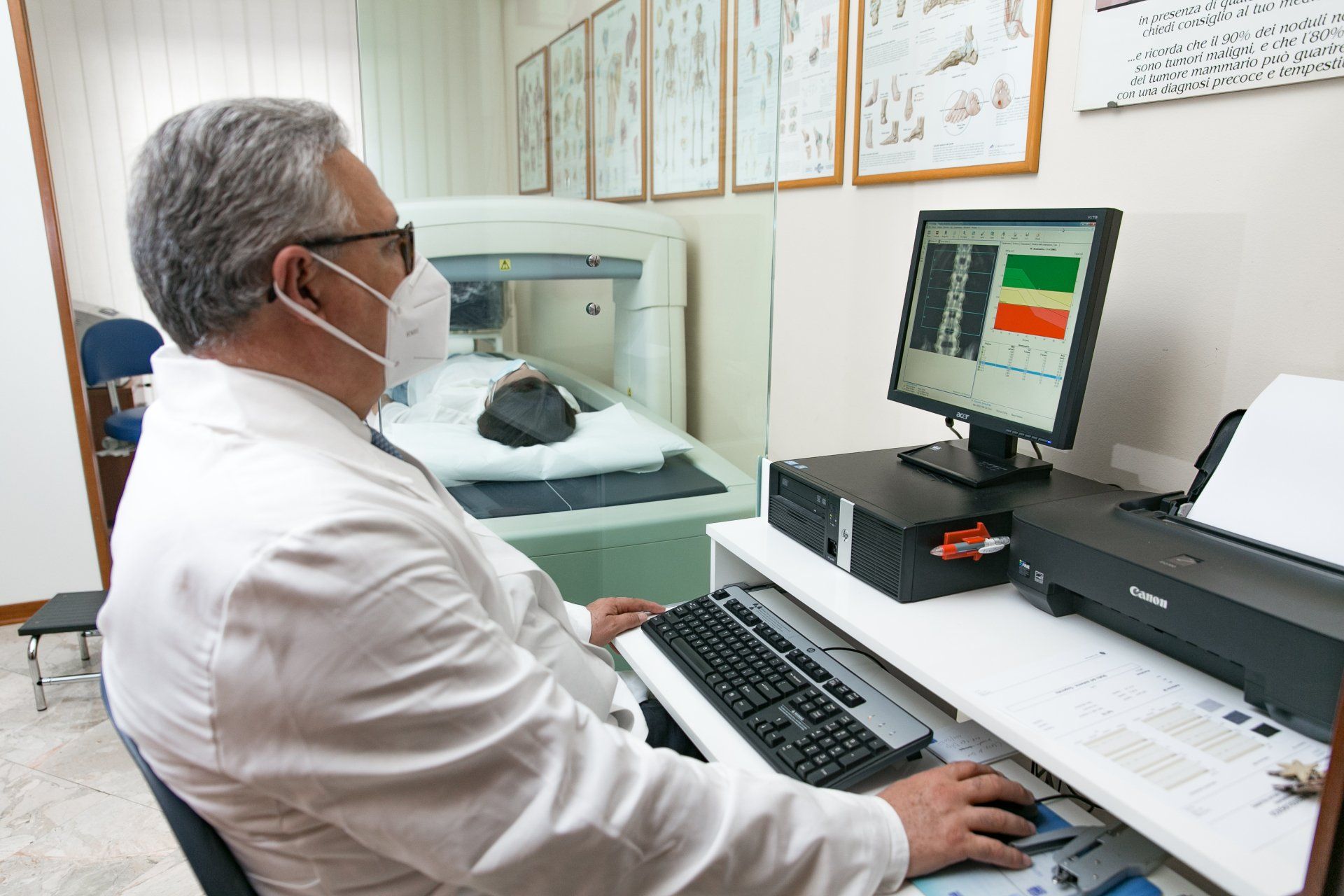 densitometria ossea (DEXA) è un esame che quantifica la massa ossea in relazione alla densità in sali minerali dell’osso. La densitometria ossea è indicata nei pazienti in cui la ridotta quantità di sali minerali dell’osso, cioè l’osteoporosi, esponga a maggior rischio di frattura. Sono a rischio di osteoporosi soprattutto le donne in menopausa, in relazione a modificazioni ormonali; pazienti in trattamento con cortisone per lungo tempo o in terapia ormonale ; uomini dopo i 65 anni d'età.